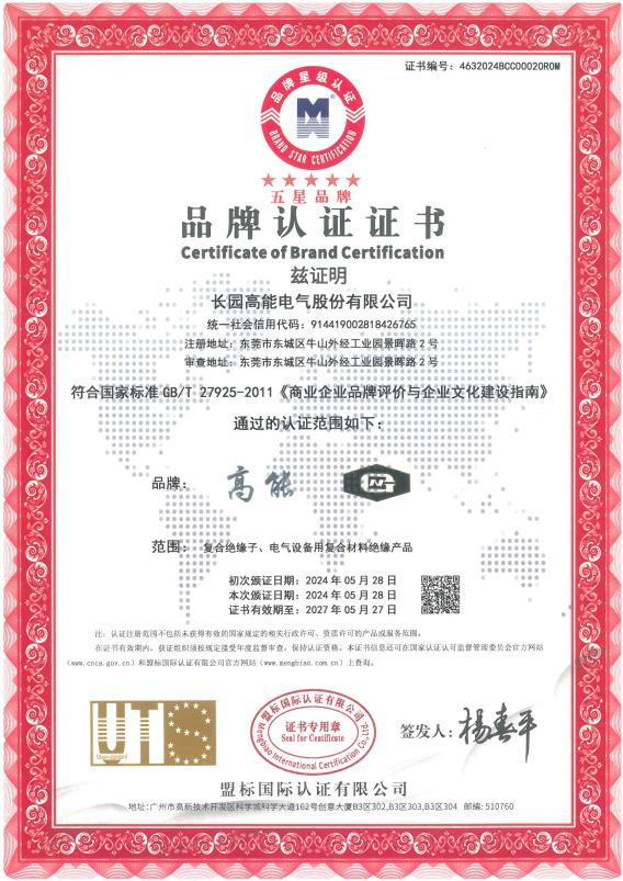 米兰milan高能荣获五星品牌认证证书